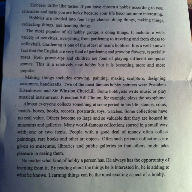 Если вы выбрали хобби согласно вашему characier и вкус вы дуги повезло, потому что ваша жизнь становится более интересной .